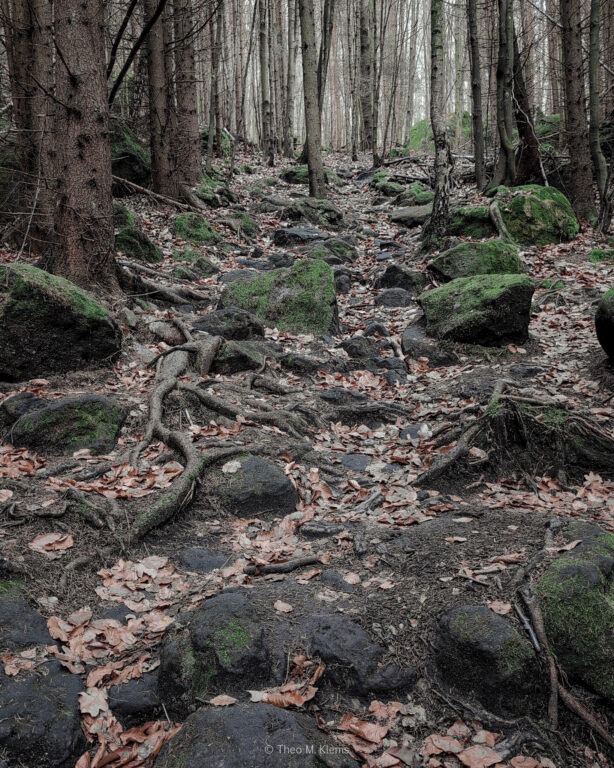 Zwischen moosigen Felsen, wurzeligen Pfaden und schmalen Stiegen öffnen sich immer wieder Blicke über die Wälder des Nationalparks.