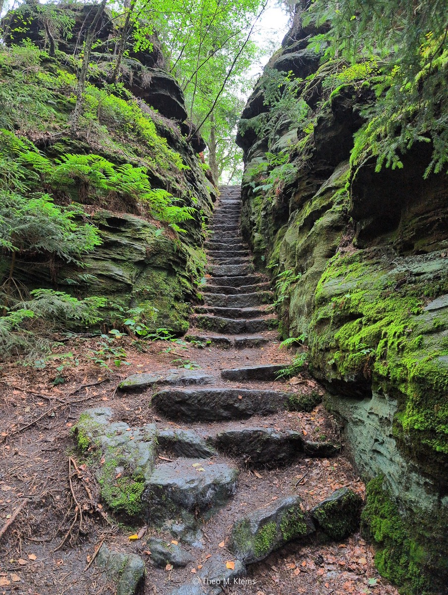 Sandstein, Stufen, stille Wasserstellen und weite Blicke wechseln sich ab.
