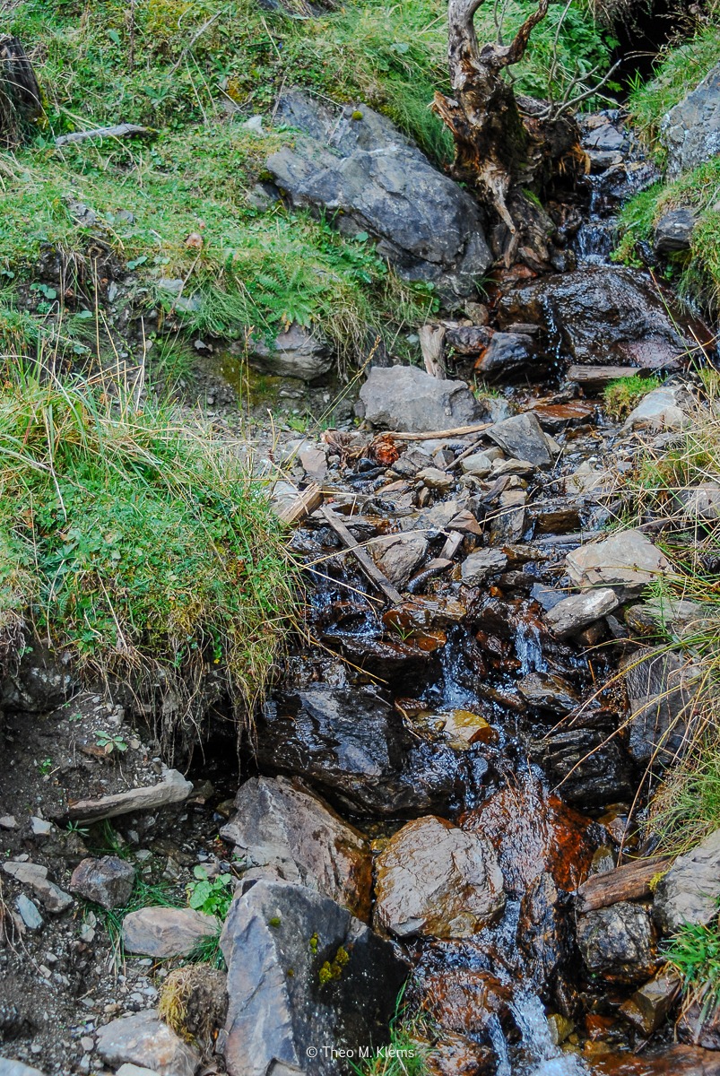 Neben dem Weg läuft Wasser.